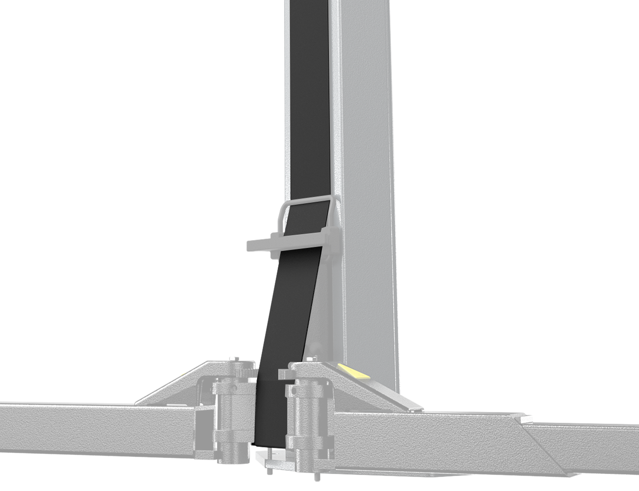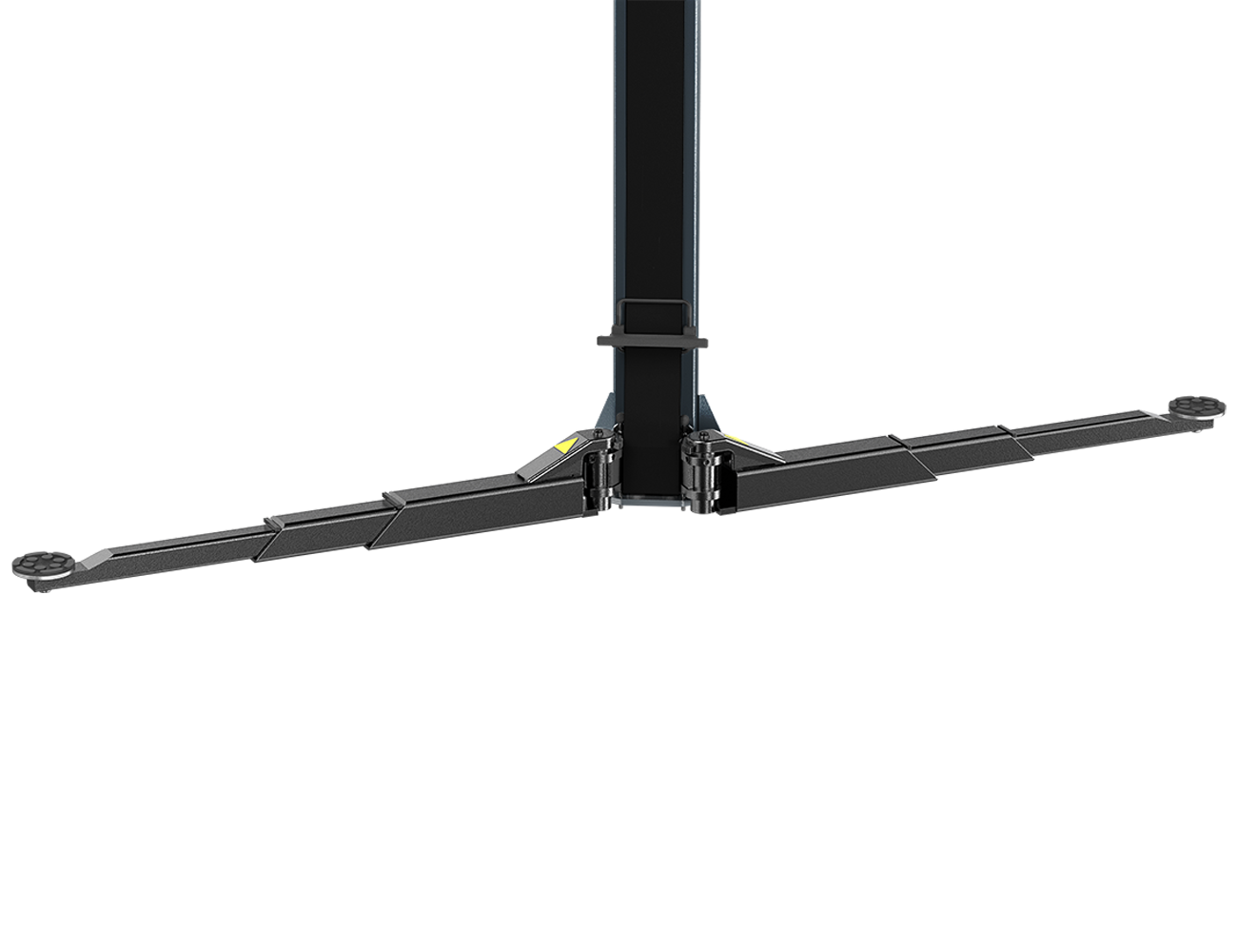 The MTF 4000C features hot-rolled steel profile columns positioned at a 30° angle, improving access and door opening clearance around the vehicle. A compact, durable roll-formed column design incorporates a rubber protective strip, helping shield the columns from sparks generated during welding or repair operations while the vehicle is raised. Lifting arms connect to the carriage via a reinforced heavy-duty pin housing, enabling smooth, bidirectional arm movement and flexible positioning at vehicle pick-up points.